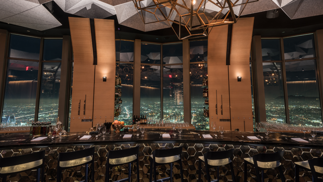 a sleek rooftop restaurant on the 71st floor of the US Bank Tower, offering stunning 360° panoramic views of LA, private dining options, and an upscale atmosphere that makes it a memorable spot for adult birthday celebrations.